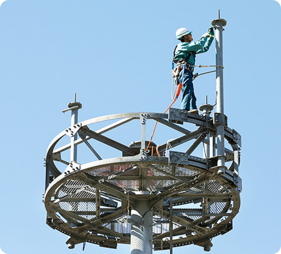 各通信キャリア様のパートナーとして、先端技術と実績に基づく機器選定・設計、徹底した品質管理体制で、高速かつ安定したモバイル通信設備を実現しています。