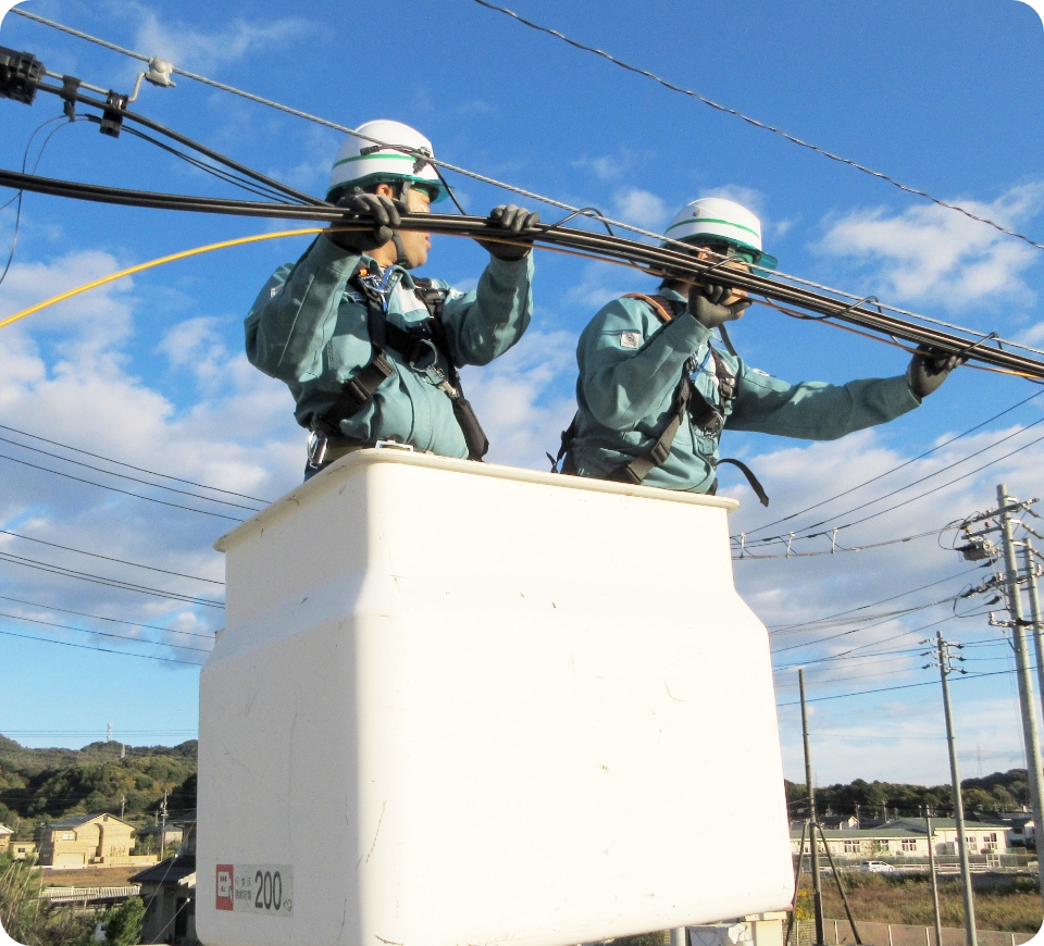 光ファイバーを中心とした有線通信設備は、IoT、クラウドなど高度情報化社会の土台。70年以上にわたり、通信ケーブルや通信設備の設計・施工・保守を中核事業として手がけ、暮らしに不可欠な有線通信設備を支えています。