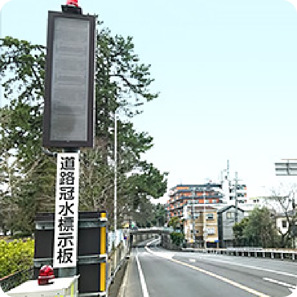 河川の水位の上昇を検知する装置や道路のアンダーパスを監視するカメラおよび、検知した際に、その情報を表示する装置を設置する工事を実施しています。