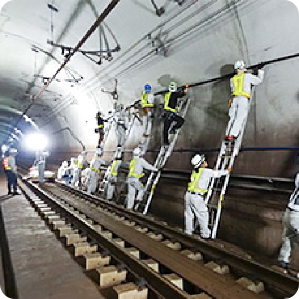 地下鉄トンネル内の通信設備、河川やダムの水位監視設備など、さまざまな通信設備の構築を通じて、日々の暮らしを支えます。