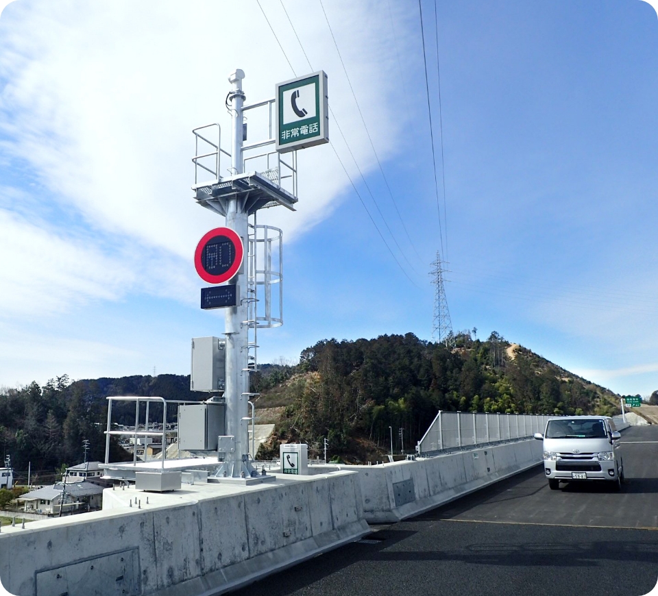 高速道路に設置されている非常電話設備を設置しています。長く、電話の設備工事に携わってきた技術を活かして高品質な工事を実施しています。